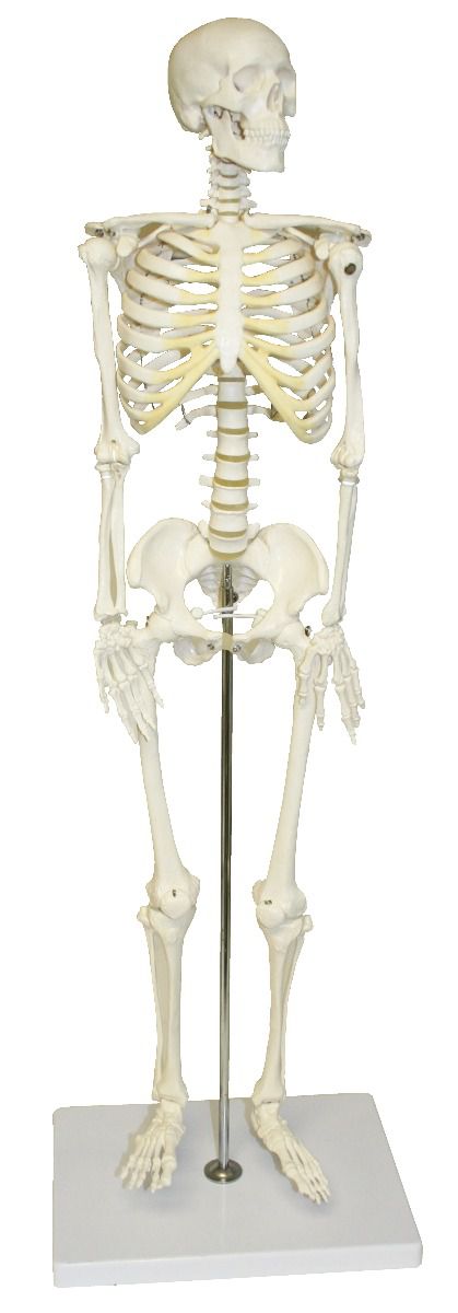 33" Half-size human skeleton wired for natural movement and highlights a removable skull with the calvarium cut.