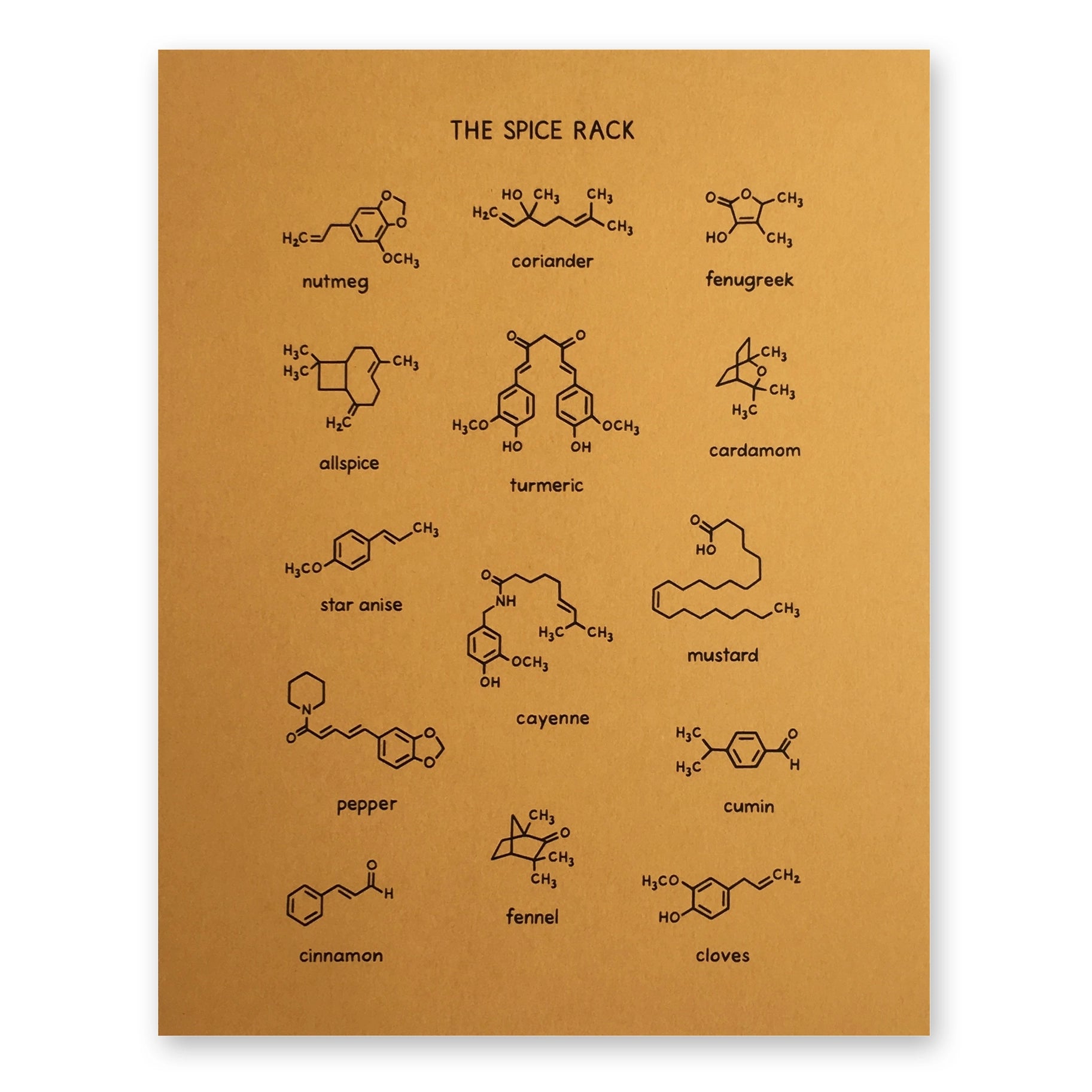 Print showing the molecular structures of compounds in various spices. Size: 8 x 10 inch.